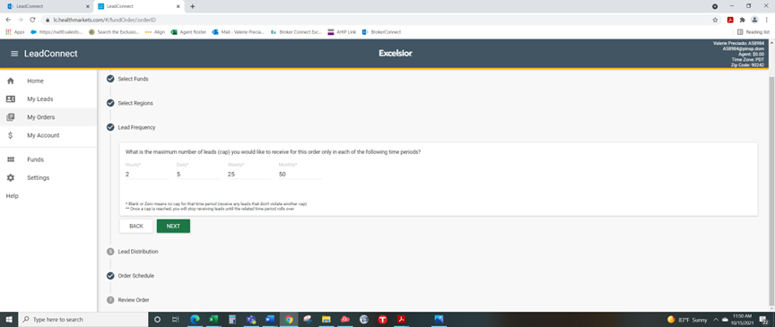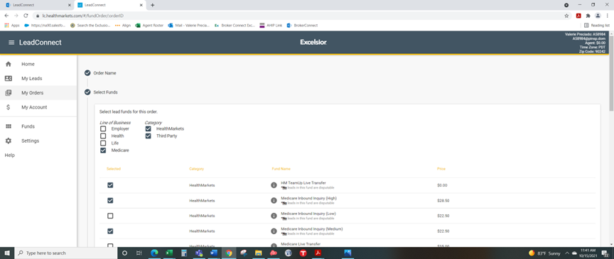 Step 5: Select the Lead Funds you would like to be generated in your account